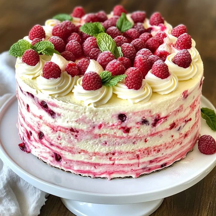 Use extra raspberry filling to create the “swirl” effect on the sides.